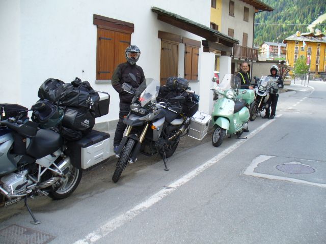 Into my first ever Italian town, La Thuile, and I meet a group of four guys from South Wales. They approve of the Hornet!