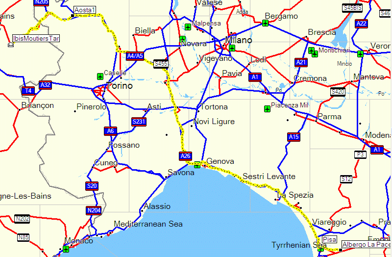 From here on there are fantastic roads all the way to Aosta, but then I have to 'make progress' more seriously. I get on the autostrada all the way to Pisa (and mistakenly pay a toll of EUR36.40, more on that later) and get to the hotel in Pontedera just 5 minutes after the advertised meet time. No too shabby, and the Hornet had done gawd knows how many miles at full Wide Open Throttle without missing a beat.