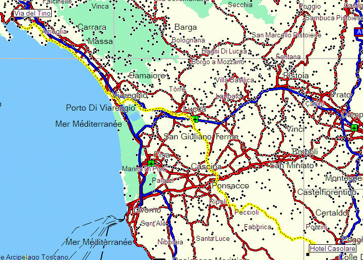 The road to St Gimi was going to be a long one - and the first stretch along the coast very built-up, and judging by the first group ride's performance I decided to take it on myself to give a briefing explaining the workings of the marker system (second-man drop-off). With one exception, this worked a treat for the rest of the rally. Al added some hints about roundabouts and admonitions about full tanks and empty bladders (FTEB), and off we set.