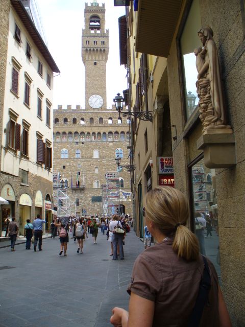 Those who read yesterday's ramblings may have guessed that Kristin might not be up to riding a scooter in Florence traffic in the morning - it's a bit different to CA traffic - no-one looks at the cars, you spot the gaps, just as in London. So the Hornet carried two people this day, and zero adjustment needed as I (like Bill before me) run on suspension setting three and a couple of PSI over the median tyre pressure recommendation as standard. All I can say was apart from being in an unknown city (so which road next?) it was water off a duck's back to me, and so we ventured in.