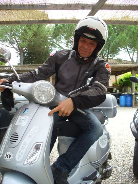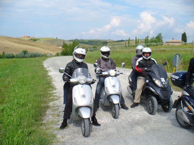 After lunch, Jess, Patrick, Doug, Kristin and myself went freelance. Great roads, including a multi-km length of gravel. Doug was now on Jess's LX125 with zero front suspension, and he did damn well getting through that! That was a Good Ride.