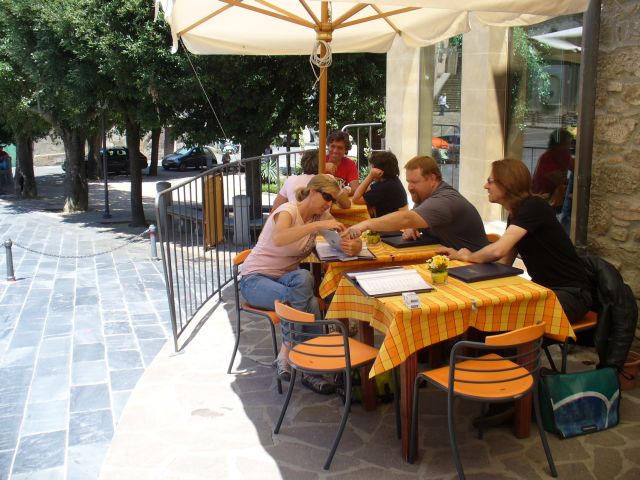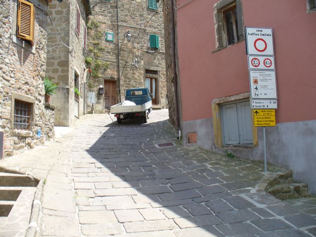There was a street up to the top - one of the oldest and thickest-walled towers of the hill-top cities - 10th century IIRC. Here's an Ape just getting up there. Yes, I did this myself while the others waited to be served - I had been recently taught how a little bit of effort can give great unexpected results.