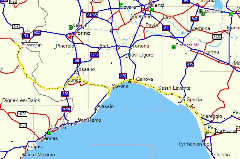 As on the way down, I hacked my way along the autostrada to get most of Northern Italy behind me as I really wanted to explore some of France I'd not been to before, and also to ride some great roads I'd previously discovered. It was after coming off the autostrada early by mistake, and then getting back on at a minor junction that had had its road-markings re-painted recently, that I realised that motos were NOT charged for using the autostrada. The 'Telepass' has two short-armed barriers, one from each side. One is for normal traffic, the other for any 'convoi exceptionelle' that needed extra width. There is a gap between them, and that is where bikes should go - clearly marked! Needless to say, none of the operators at the toll booths had said a word about this, they had cheerfully taken the money from an ignorant foreigner who had not deciphered the worn-out marking at all other autostrada entries. One to remember...